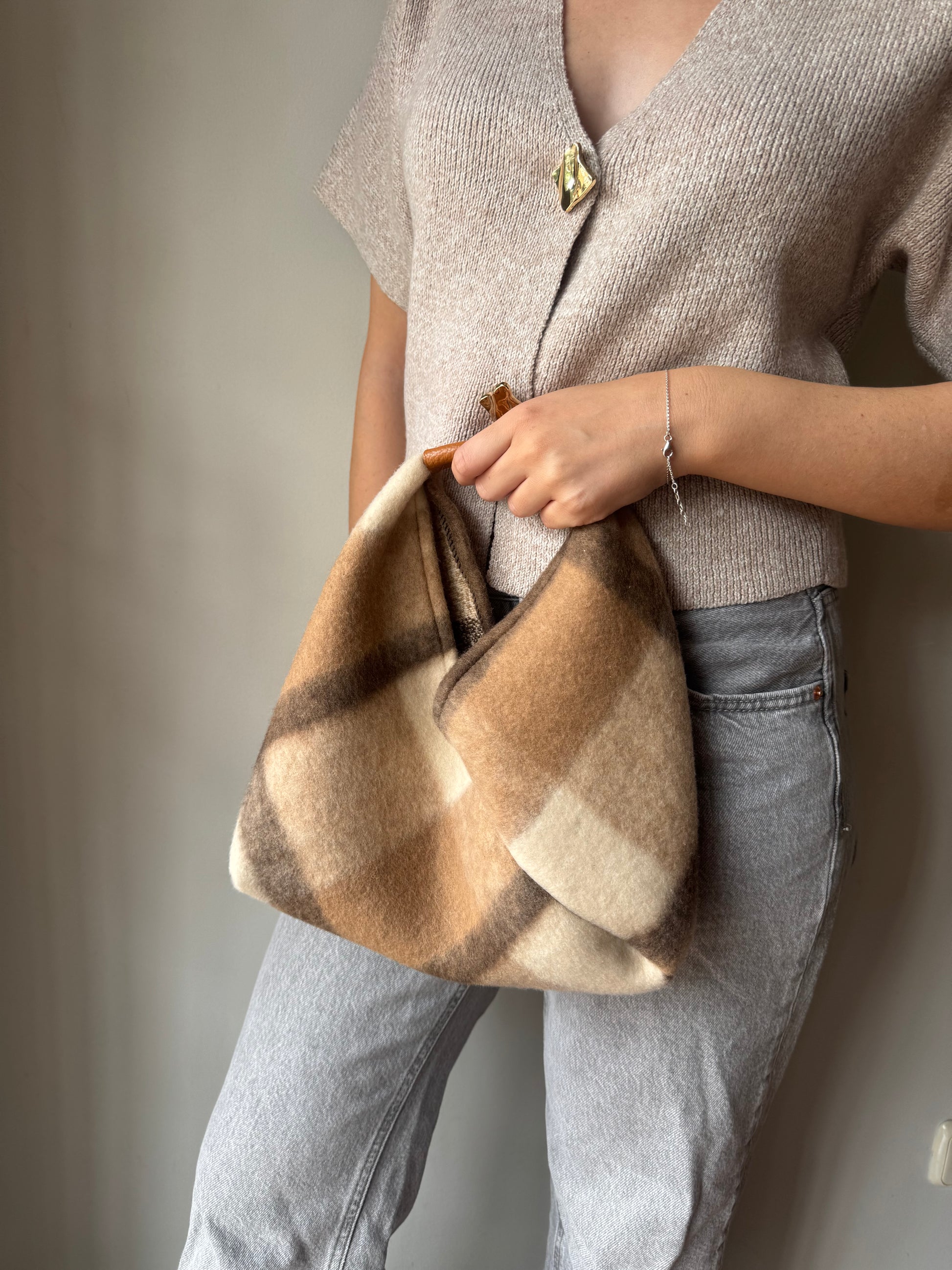 Bolso de tela suave con diseño de líneas. Broche de imán de cierre.